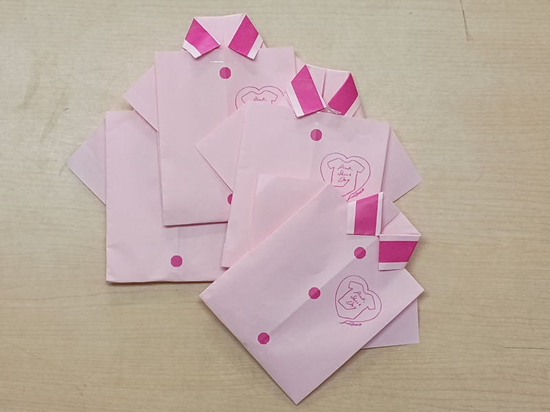 各センターでピンクシャツの折り紙を募集中!折った上で、優しい世界に向けてのいじめや差別に反対するメッセージを、表面にお書きください。どのセンターでも受け付けております。