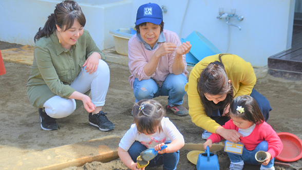 YMCAみどりのつぼみ保育園では、地域の0~2歳児の子どもたちの成長を支援するために、こひつじクラブを開いています。 子どもたち、お父さん、お母さんと一緒に、遊びに来てください。同じ年齢の友だちとの輪も広がっていきます。