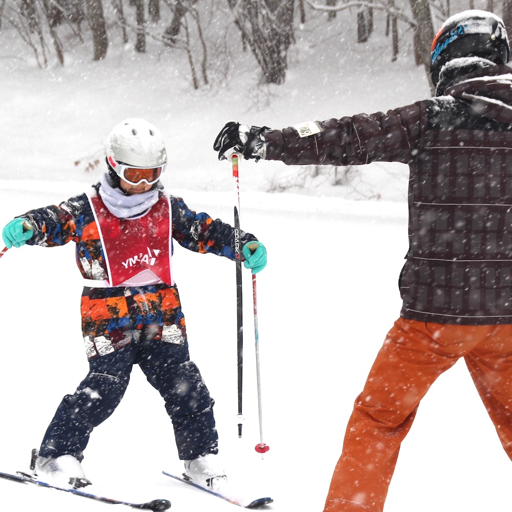 ふわふわのゲレンデで「はじめのいっぽ」!リーダーと挑戦し、ブーツからリフトまでをマスター。たくさんの「やった!」を体験しよう。